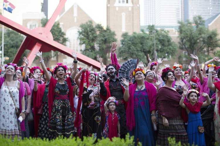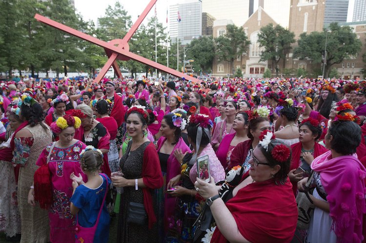 А недавно Далласский художественный музей (Dallas Museum of Art) возвёл восхищение Фридой Кало на новый уровень, когда более 1000 человек попытались установить мировой рекорд и попасть в Книгу рекордов Гиннесса за самое массовое собрание людей, переодетых в художницу.