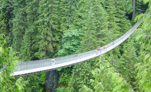 Подвесной мост Капилано расположен в округе северного Ванкувера, Британская Колумбия, Канада. С самого первого взгляда становится понятно, почему мост приобрел популярность среди туристов. Под всей длиной конструкции, равной 136 метрам, открывается великолепный вид на реку. На высоте 70 метров каждый из 80000 туристов в год может насладиться красотой природы.